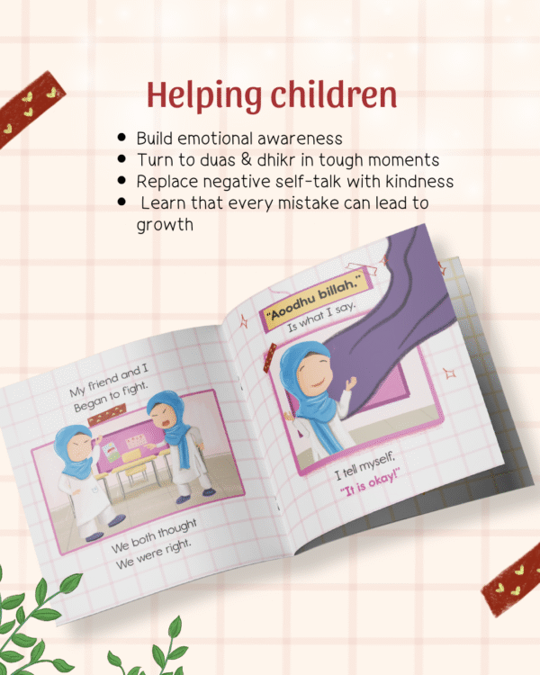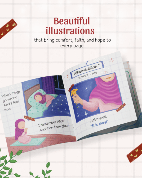 This book introduces eight easy duas and dhikr in the form of a catchy poem. It aims to teach children that despite their best efforts, things do go wrong. They should not think of a mistake as the end of the world or engage in self-blame, but use positive self-talk and see how they can make up for it.